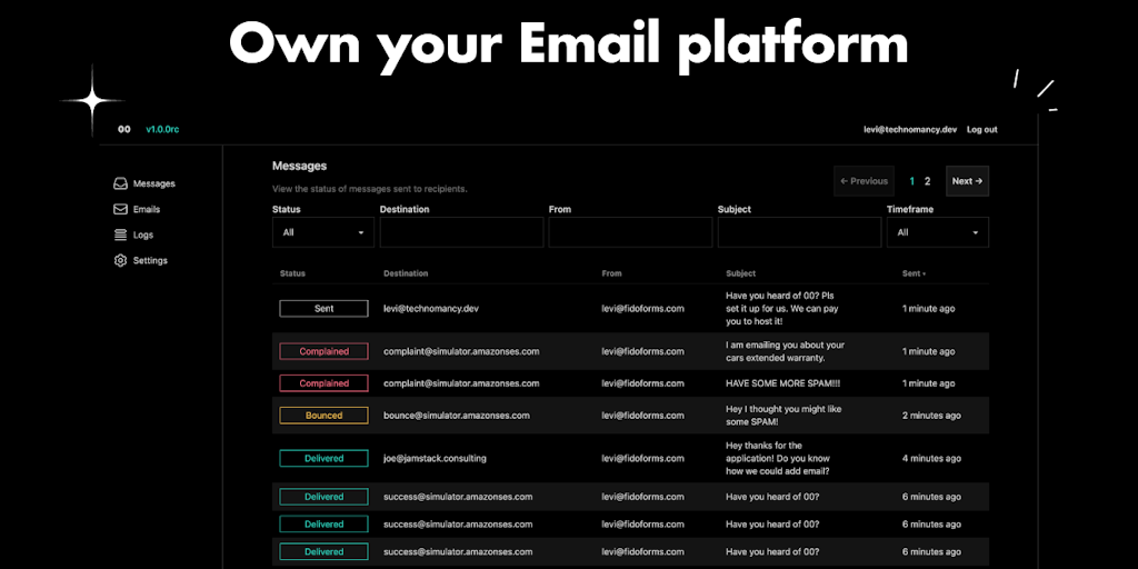 00 is a dashboard for sending and monitoring emails via AWS SES. 00 provides an SST configuration to set everything on the AWS side up, as well as a dashboard and api for monitoring and sending emails