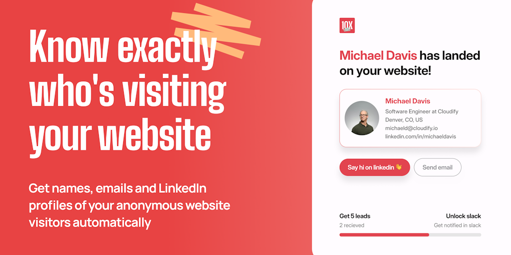Just add our one-line script to your website and know exactly who's visiting your website – get names, emails, and LinkedIn profiles of your anonymous website visitors automatically as soon as they la
