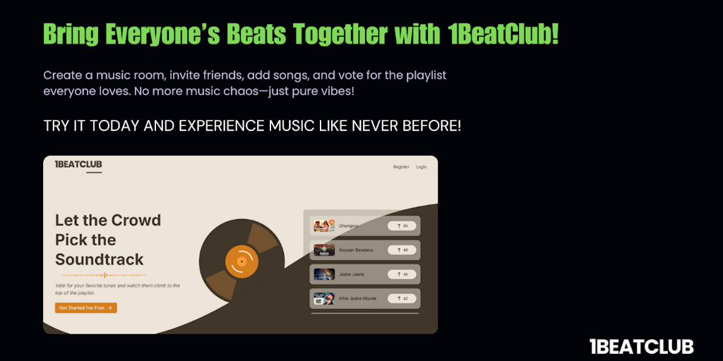 1BeatClub - 1BeatClub – Where everyone’s vibe becomes the playlist! | Product Hunt