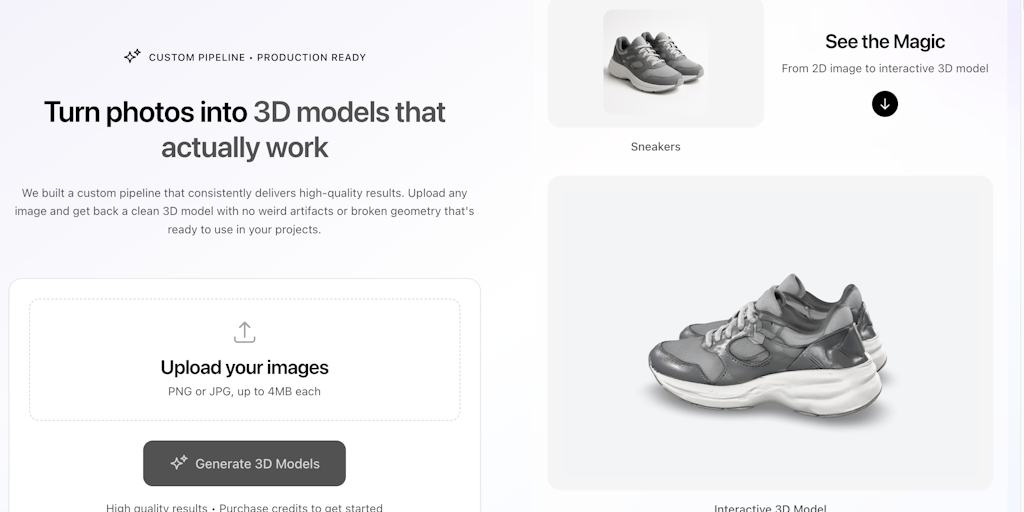 We built a custom AI pipeline that consistently delivers high-quality results. Upload any image and get back a clean 3D model with no weird artifacts or broken geometry that's ready to use in your pro