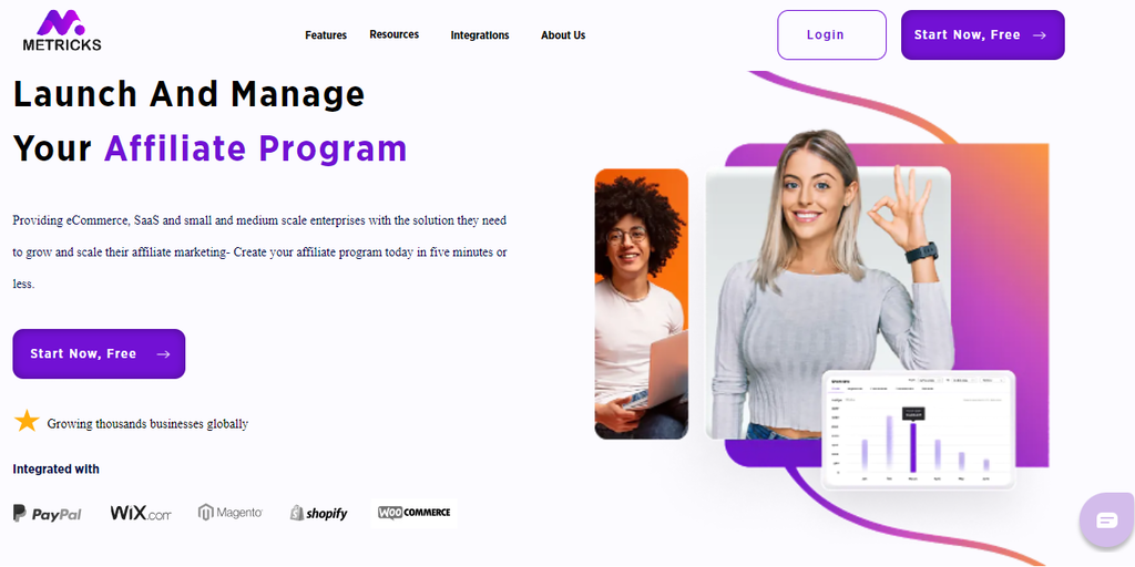 Metricks is an affiliate marketing tracking software developed to help SaaS, eCommerce, and Small Businesses across the world scale through cutting-edge affiliate programs and a seamless tracking expe