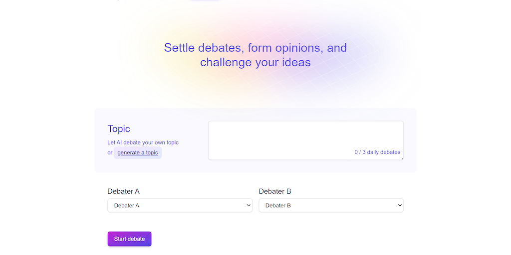 AI-powered debates for everyone. Engage in thought-provoking discussions, challenge ideas, and explore new perspectives. Perfect for learning, expanding horizons, and settling disputes