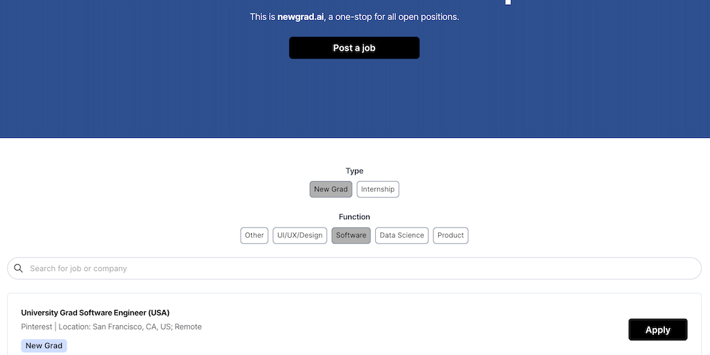 New Grad - A simple job board of new grad and internship positions | Product Hunt