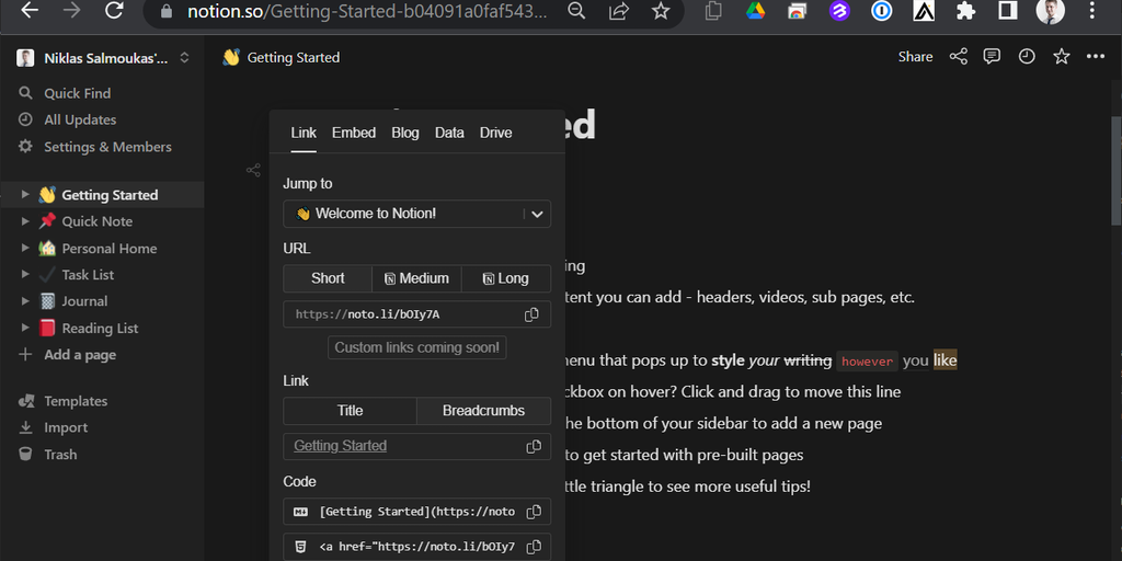 Do you hate posting lengthy Notion URLs? Not anymore! Noto Link is a seamlessly integrated URL shortener and beautifier for Notion.