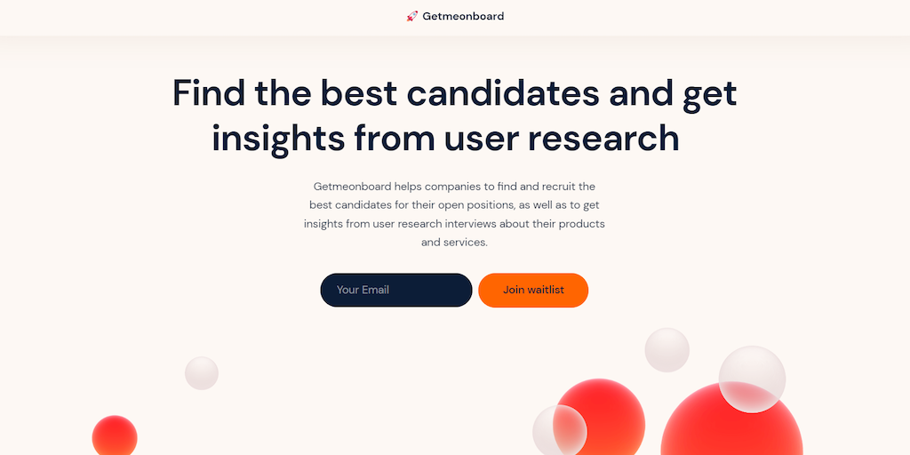 Getmeonboard helps companies to find and recruit the best candidates for their open positions, as well as to get insights from user research interviews about their products and services.