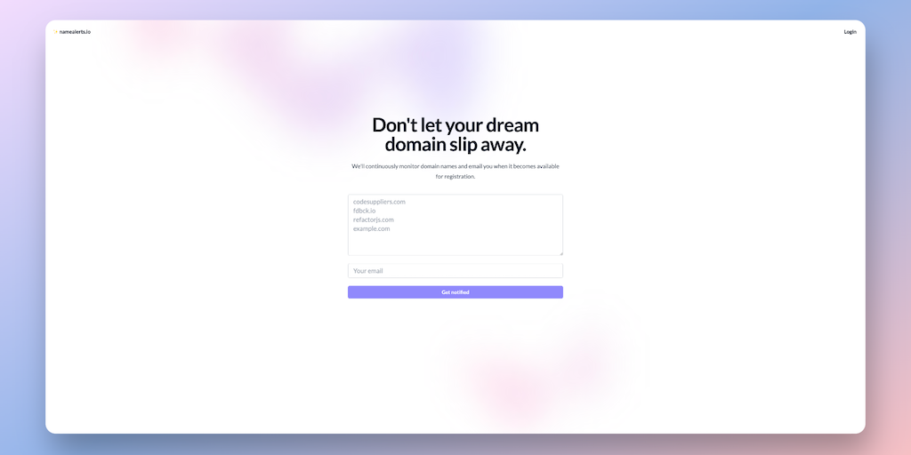 namealerts.io - Don't let your dream domain slip away | Product Hunt