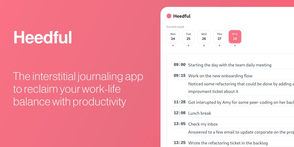 Heedful - The interstitial journaling app to reclaim work-life balance | Product Hunt