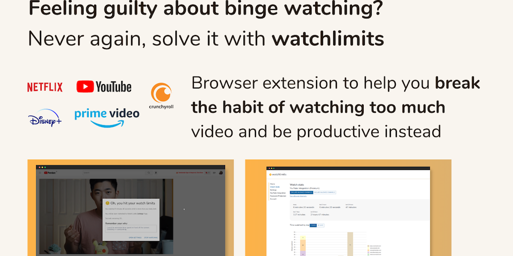 watchlimits - Solve binge watching and unlock hours of lost productivity | Product Hunt