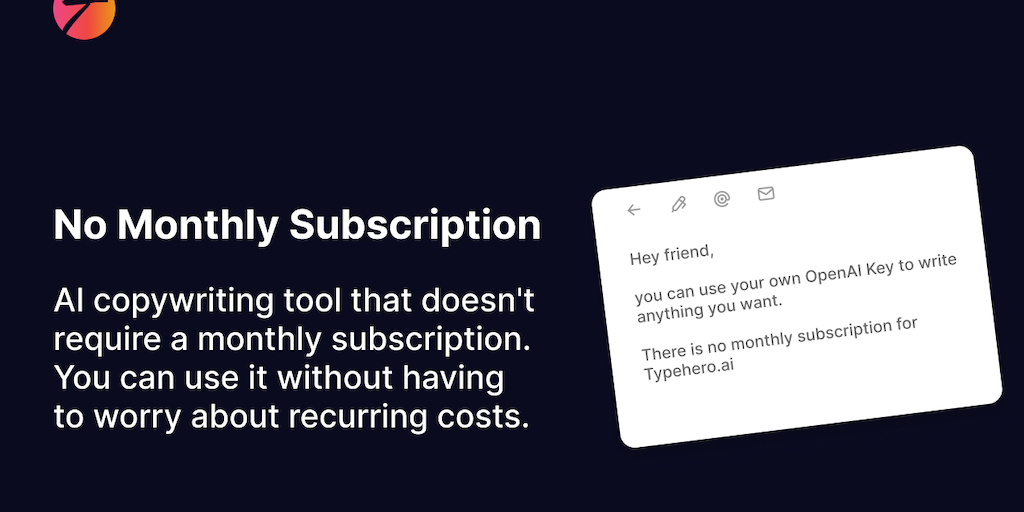 Typehero makes it easy to create amazing content without any monthly subscription. You can use own OpenAI API Key. Typehero is the ultimate AI copywriting app for startups, entrepreneurs, and marketer