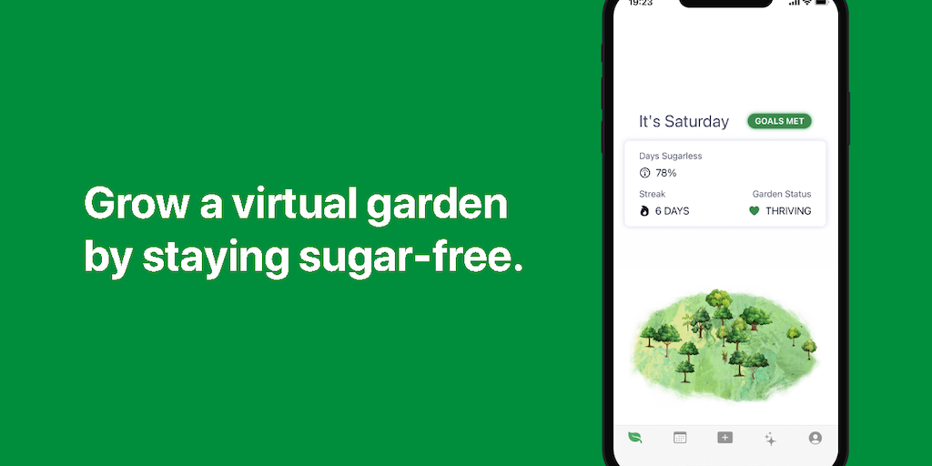 Sugarless is an iOS app that helps you quit a sugar habit by growing a virtual garden and embarking on a therapy-based coaching program. It includes a panic button widget giving you immediately action