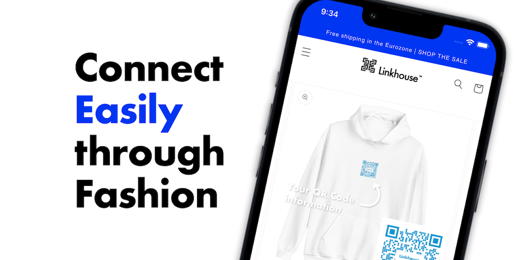 Hoodies, t-shirts, and sweatshirts that are printed with a personalized QR code. Link your Instagram, TikTok, LinkedIn, and co, and link up with others. Perfect for increasing engagement online and of