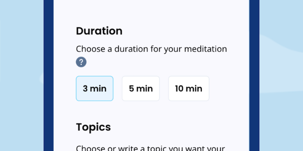 Endlessly searching for a great meditation suited to your needs? Create your own in seconds using our state-of-the-art AI. Simply choose a duration that fits your routine 🕒 your favorite voice 🎙️ and