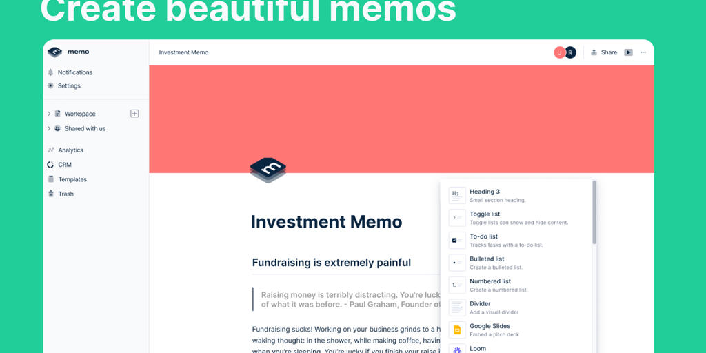 Fundraising by Memo - The all-in-one fundraising tool — Memos, Analytics, CRM | Product Hunt