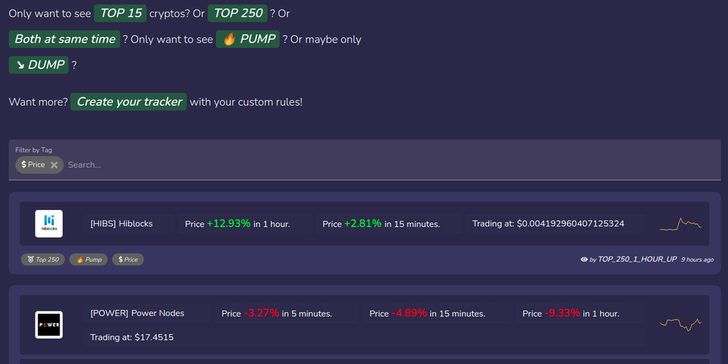 CryptosAlerting allows you to set your own tracker to get a notification when important events occurs on the crypto sphere such as price variation over time or reddit trending score! Lots of new featu