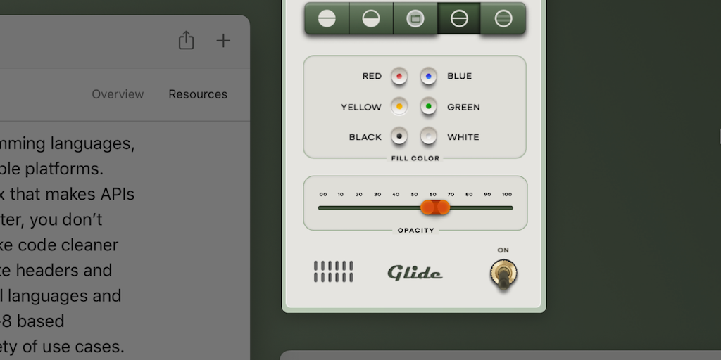 Glide is a focus pointer which dims parts of your screen for better focus and reading experience. You can still interact with everything on your screen while the app is active. Lots of customisation o