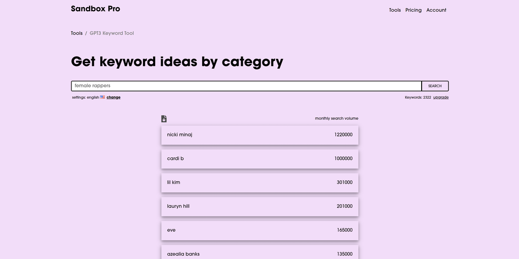 GPT3 Keyword Tool by Sandbox SEO - Get unique keyword ideas powered by GPT3 | Product Hunt