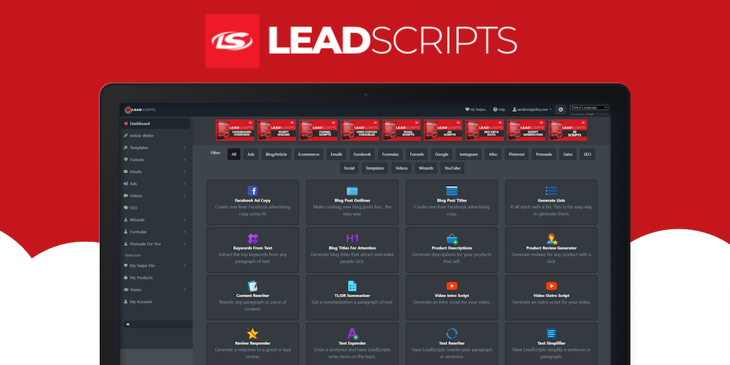 LeadScripts is a powerful sales and marketing copywriting engine that helps you write better copy for your business. It provides you with a library of proven, effective copywriting templates plus AI-p
