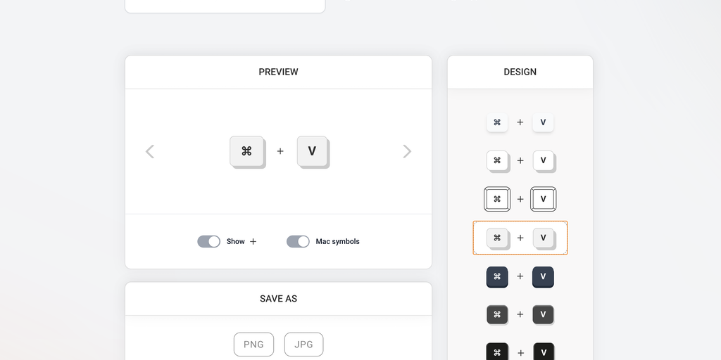 kCaps.app is a tool to quickly design keyboard shortcut images for your docs or app tutorials. It has a set of keycaps designs and lets you download the results aspng orjpg. You just need to press or