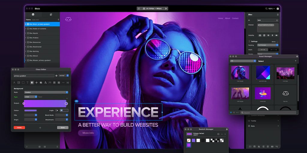 Blocs for the Mac, is fast, intuitive and powerful visual web design software, that lets you create responsive websites without writing code.