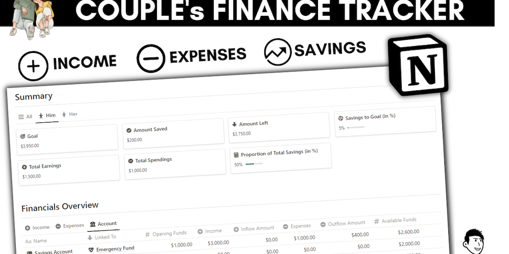 Our Couple's Finance Tracker built-in Notion is the ultimate tool for people in love looking to strengthen their finances as much as their relationship 💖 Now tracking income, expenses, and savings as