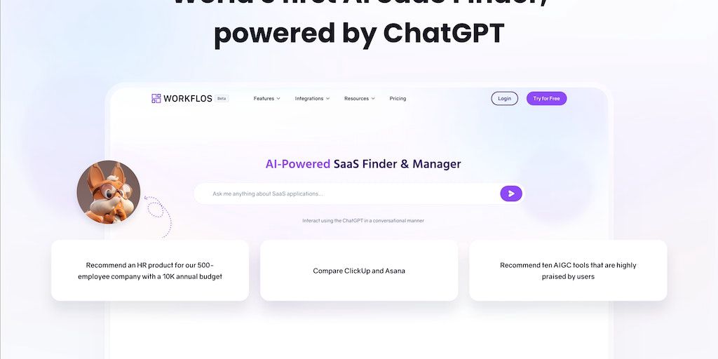 Workflos.ai - Your AI assistant to Find & Manage SaaS with nature language | Product Hunt