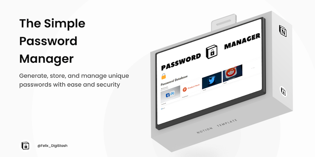 Generate, store, and manage unique passwords with ease and security! With this Notion-Template you'll never forget your passwords ever again. Create new and secure passwords with the press of a button