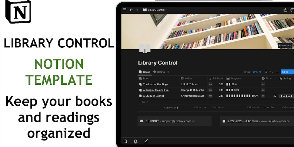 With this Notion Template you can organize your collection of Books! Track your reading performance with graphics, know how many days it took to read each book, assign Stars to the books!