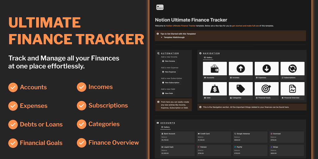 Notion Ultimate Finance Tracker - Track and manage all your finances at one place effortlessly | Product Hunt