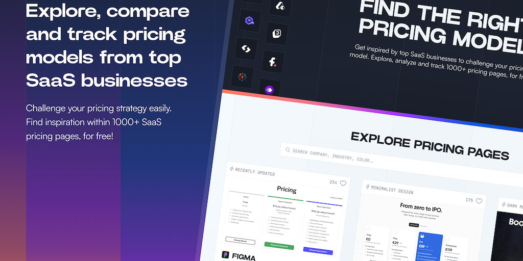 Find your next pricing strategy 🔭 Get inspiration from 1000+ pages 🪄 Learn from founders, iterate on your pricing 🔔 Get real-time insights, monitor competition ❤️ Get exposure by having your page feat