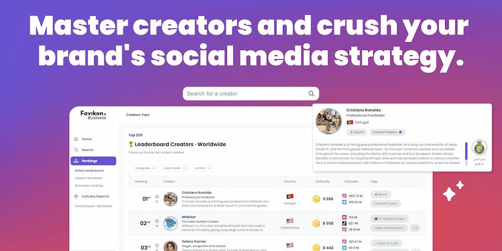 Favikon is the first AI-based platform ranking creators on social media to give brands actionable insights for their social media strategy.