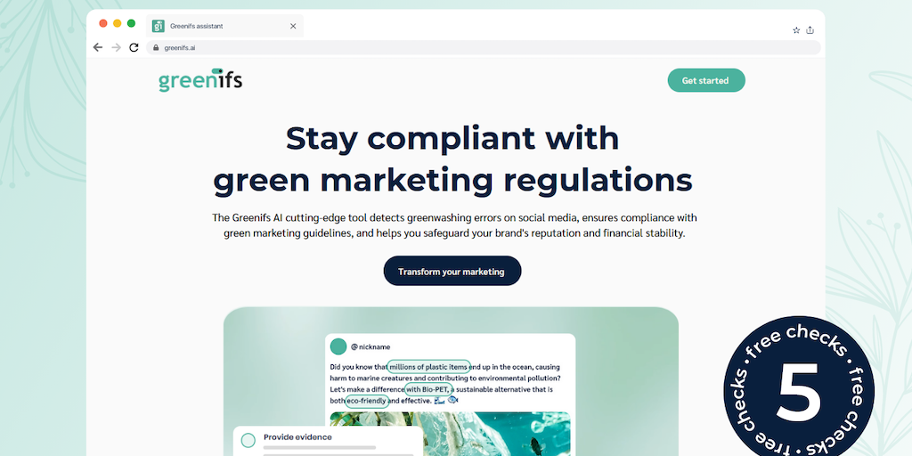 Greenifs AI cutting-edge tool detects greenwashing errors on social media, ensures compliance with green marketing guidelines, and helps you safeguard your brand's reputation and financial stability.