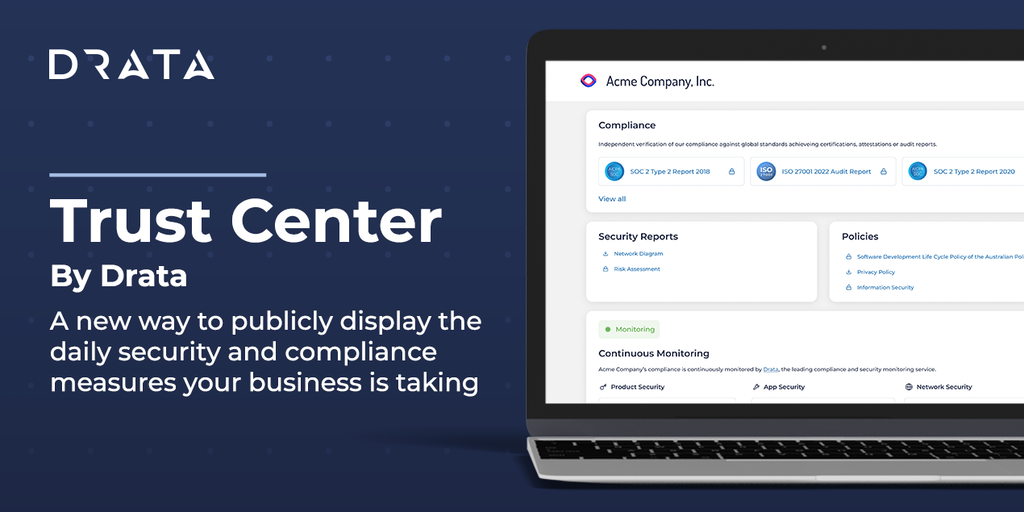 Trust Center is a new way to publicly showcase the daily security and compliance measures your business is taking. Share continuous, real-time control monitoring powered by Drata, plus certifications