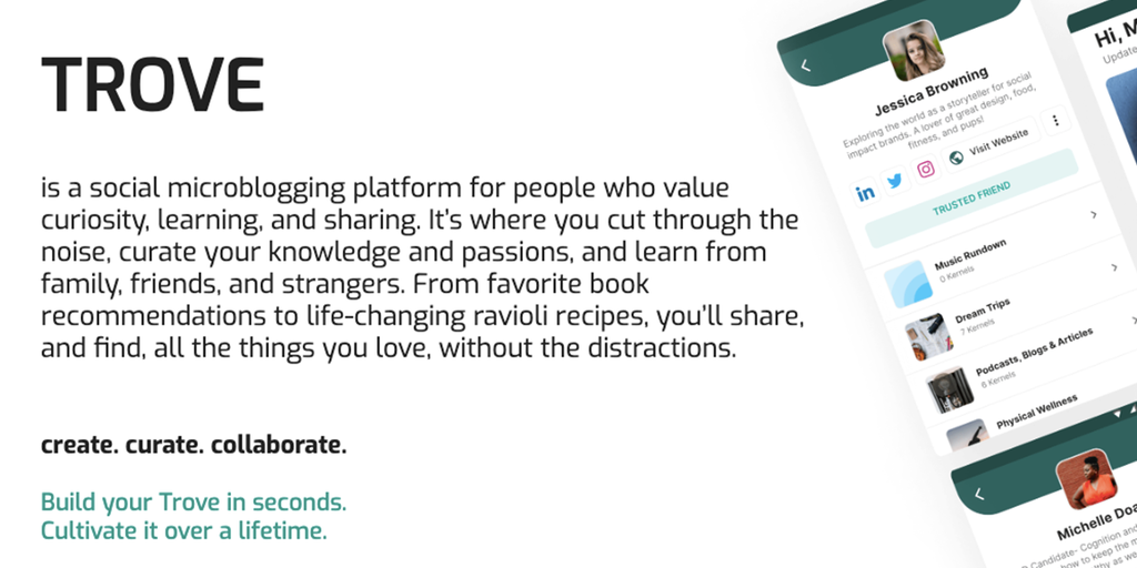 Trove is a social microblogging platform for people who value curiosity, learning, and sharing. We enable creators and hobbyists alike to create, curate, and monetize their impact. We believe informin