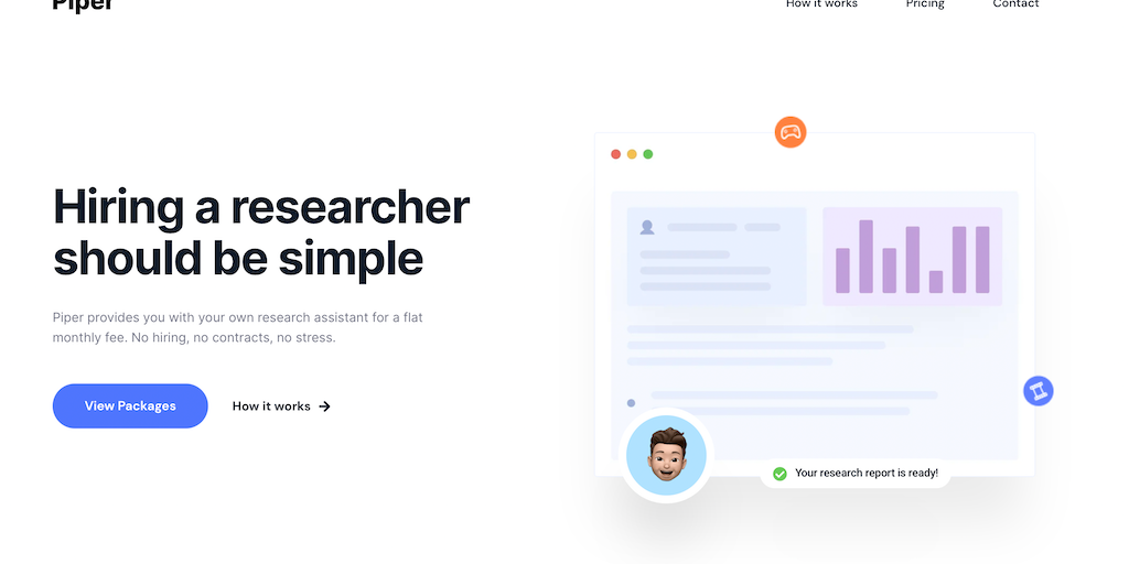 Piper provides you with your own research assistant for a flat monthly fee. Request anything from desktop research to tracker surveys to design testing.