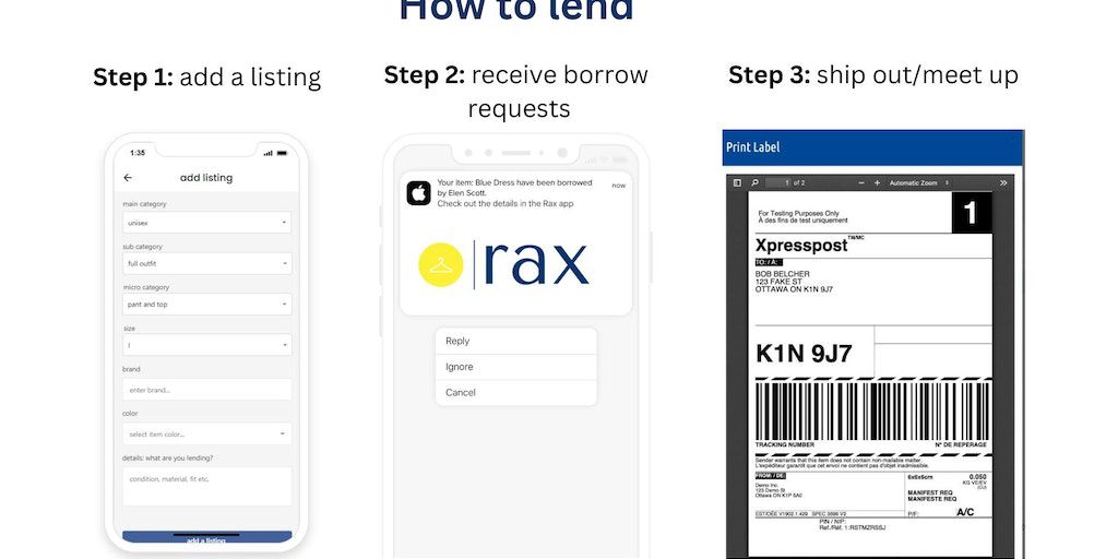 rax is Canada’s peer-to-peer wardrobe rental app. Driven by our community, lenders, list items they are willing to lend out and make money on from borrowers who rent out items for a fraction of the co