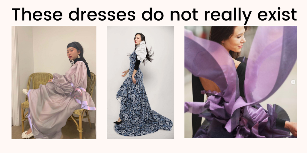 We create fashion that only exists digitally. The customer can upload a photo of themselves on our platform. We tailor the item to fit their pose so that it really appears they're wearing it in the photo. Or we could wear your avatar in game or metaverse.