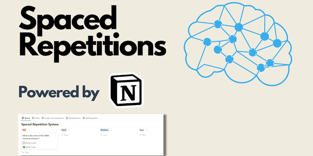 Never forget anything anymore with spaced repetition flashcards. This Notion template helps you create Anki-like flashcards for spaced repetitions in Notion. It is the most advanced spaced-repetition
