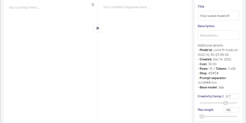 Trudo AI is a simple user interface that allows anyone to fine-tune GPT3 models with a spreadsheet. b