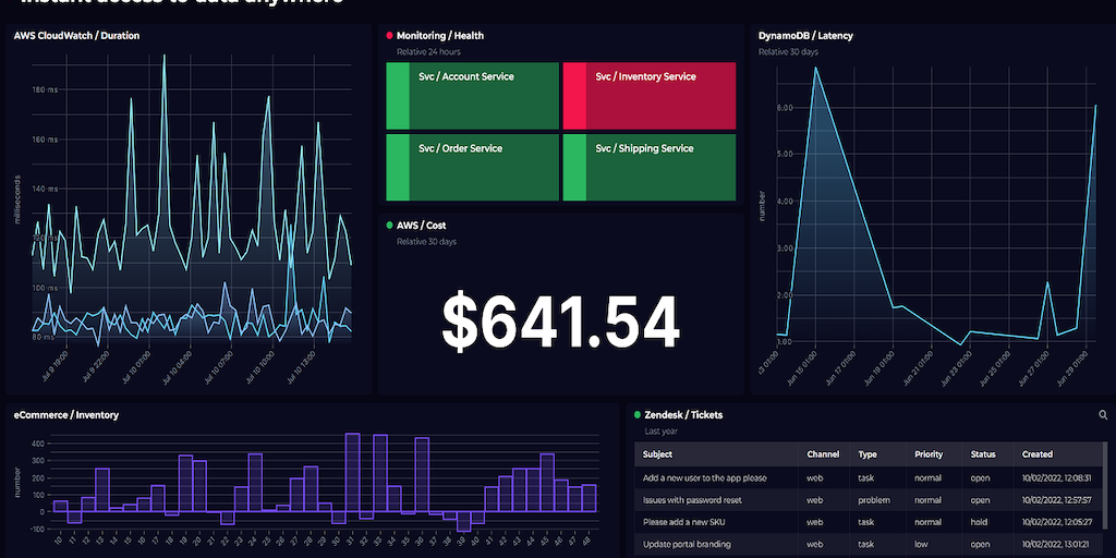 The unified visibility layer for engineering, product, and IT teams. Say goodbye to blind spots and data silos with instant access to 100+ data sources.