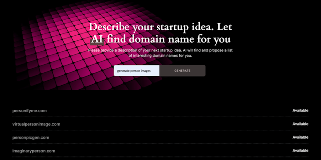 Describe your startup idea. Let AI find domain name for you
