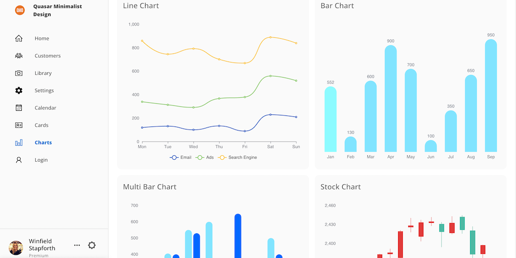 Quasar Minimalist Design: A premium admin template embodying minimalist web design philosophy. It prioritizes simplicity, cleanliness, and functionality. Ideal for businesses seeking a user-friendly d