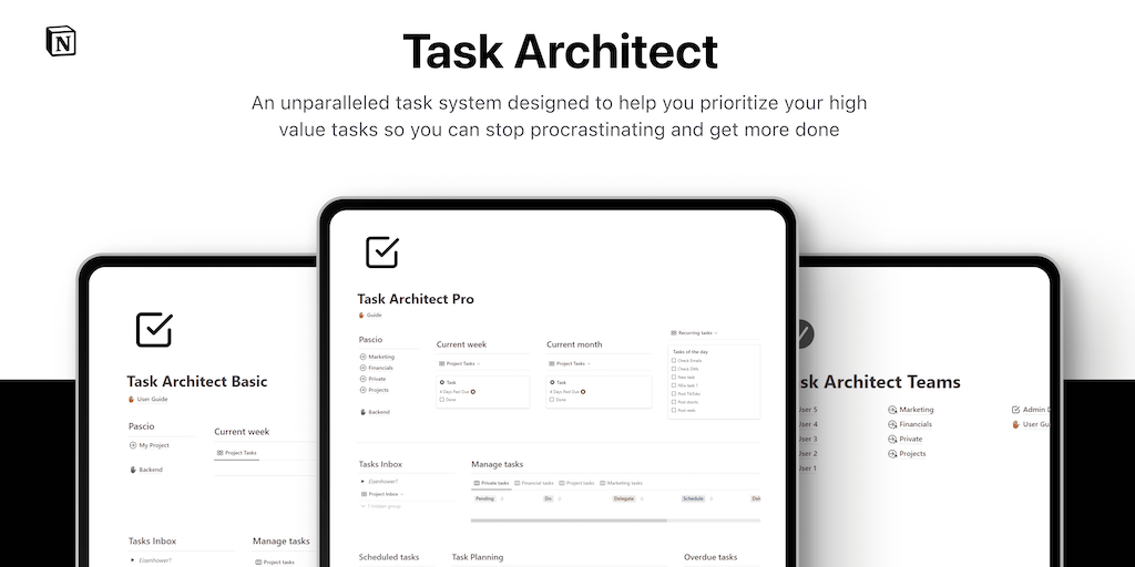 Task Architect is an unparalleled task system designed to help you prioritize your high value tasks with the Eisenhower Matrix, so you can stop procrastinating and get shit done.