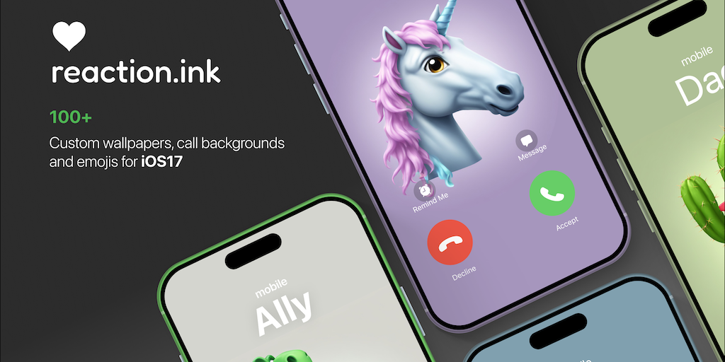 Create or download over 100 unique Memojis and Emojis with Reaction.ink. Enhance your iPhone with custom backgrounds and new iOS call posters. Share your creations effortlessly with friends.