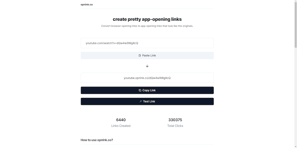 opnlnk.co - create app-opening links that don't scare your audience | Product Hunt