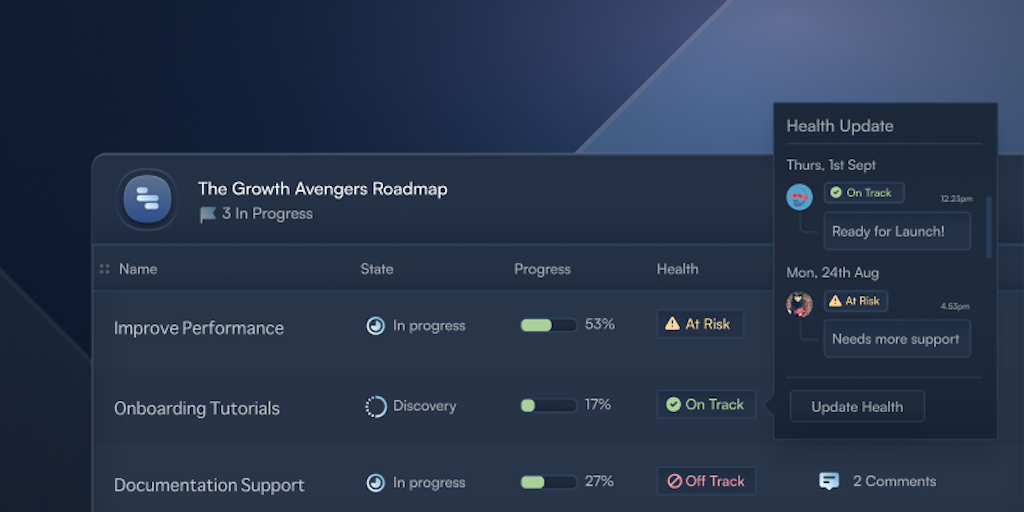 Introducing Shortcut curated roadmaps, all of your product and engineering work curated in one place. Combine short health updates with real-time quantitative data for everything that the teams are wo