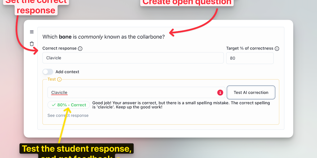 Craft online quizzes that aren't just multiple-choice 😶 Allow students to engage with open questions and instantly see feedback 👨🎓 And for teachers 🧑🏫 ? A seamless editing experience. Create quiz in