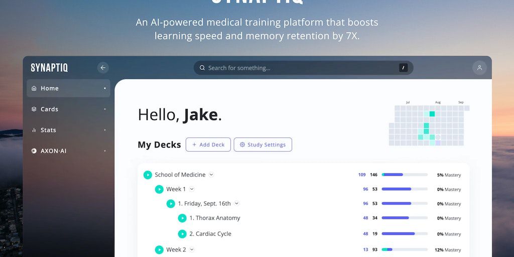 Synaptiq began as a personal learning tool made by a UCSF med student & Stanford neurosurgery resident, which got him a 100th percentile licensing exam score. It has now grown into an AI-powered medic