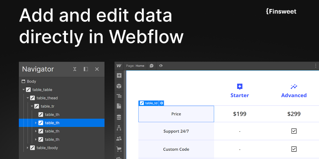 Finsweet Table for Webflow - Generate tables using the HTML <table> tag in Webflow | Product Hunt