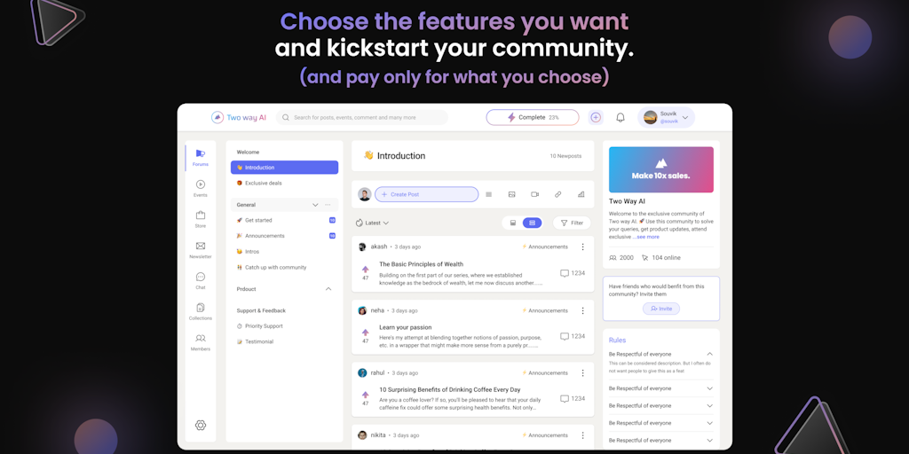 Wylo is a highly customizable community platform for brands and creators to run forums, host events, sell digital products, chat with members, send newsletters, organize resources, and do more - all i