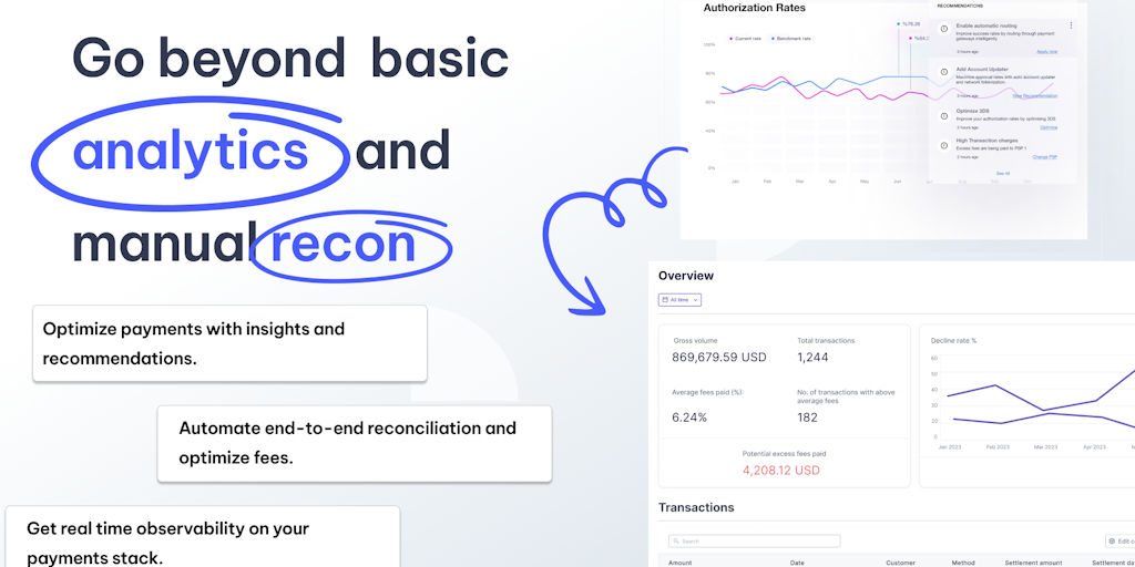 1. Optimize: Get in-depth insights on your payment stack and uncover hidden opportunities 🔍 Improve your success rates with AI-based recommendations 🧠 2. Reconcile: Automate recon and save FinOps band